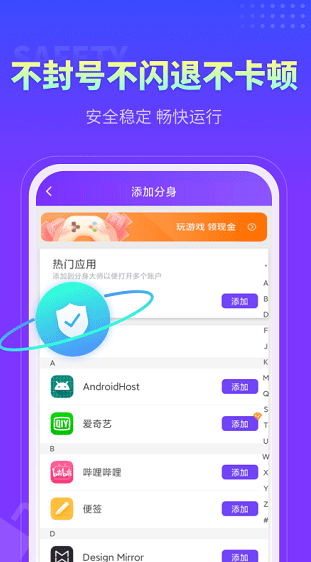 3、游戏多开助手(分身大师)APP可以让大家轻松的进行应用、游戏多开,能够让你的手机拥有更好的使用体验,在软件内拥有很多的功能,可以帮助大家稳定的多开一些app,让大家一部手机同时等等两个微信、qq、游戏等等,并且使用很稳定,不会闪退不会封号。